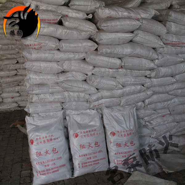 LGP-1012防火包 產(chǎn)品介紹: LGP-1012型防火包是我公司根據(jù)GB23864-2009 國家標(biāo)準(zhǔn)研制成功的新型防火配套耐火材料,該產(chǎn)品可根據(jù)用戶不同的要求壘制成各種形狀的防火墻、防火層.亦可封堵需要作防火處理的孔洞。遇火時(shí),防火包內(nèi)的物質(zhì)受熱膨脹,結(jié)成蜂窩狀整塊,有效地將火災(zāi)控制在局部范圍之內(nèi)。 用防火包做隔墻,取代了過去用耐火磚、礦渣棉、陶瓷棉等材料,與它們相比,防火包有顯著的隔熱效果。 LGP-1012型防火包適用干電力、電信、郵政、化工、工礦、企業(yè)、建筑當(dāng)中,電纜、油管、風(fēng)管、氣管、金屬管道等貫穿物穿過隔墻或隔層時(shí)所形成的空洞的封堵可阻止火焰蔓延,特別適用于經(jīng)常更換電纜的重要部位。 施工方法: 電紐豎井,用阻火網(wǎng)、阻火板或鐵板做支墊,將防火包平鋪于墊上,壘成隔層,電纜隧道和電纜溝根據(jù)國內(nèi)電纜隧道和電纜豎井的有關(guān)間距規(guī)定,在需要設(shè)置隔墻處,將防火包壘成防火墻即可。必要時(shí)可用角鋼做成支架以方便封堵。 包裝運(yùn)輸: 1、LGP-1012型防火包用塑料級(jí)外附防火布袋,再用編織袋包裝,儲(chǔ)存在陰涼干燥處。 2 、運(yùn)輸時(shí)按普通安全固體物質(zhì)運(yùn)輸,防止雨淋和曝曬。 性能指標(biāo):
